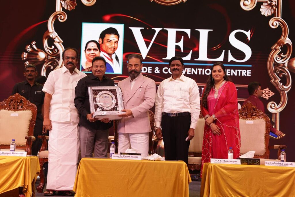 சிறப்பு உரையாற்றிய பத்மபூஷன் டாக்டர் கமல்ஹாசன், இன்று சென்னை, பான்-இந்தியா திரைப்பட தயாரிப்பு மையமாக உருவெடுத்துள்ளதாக தெரிவித்தார். தமிழ் திரையுலகத்தை அடுத்த கட்டத்திற்கு எடுத்துச் செல்ல இளைய தலைமுறையை அவர் ஊக்குவித்தார். திருமதி குஷ்மிதா கணேஷ் குறித்து குறிப்பிடுகையில், ஒருகாலத்தில் தமிழ் சினிமாவின் ஒளி மங்கிவிடுமோ என்ற அச்சம் இருந்ததாகவும், ஆனால் இளம் தலைமுறையின் தலைமையும் படைப்பாற்றலும், தமிழ் சினிமா தேசிய மற்றும் உலகளாவிய உயரங்களை எட்டும் என்ற நம்பிக்கையை மீண்டும் அளிப்பதாகவும் அவர் கூறினார்.